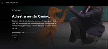 Videos prácticos: El curso incluye tutoriales en video donde se muestran técnicas de adiestramiento, consejos prácticos y ejemplos de sesiones reales de entrenamiento con perros